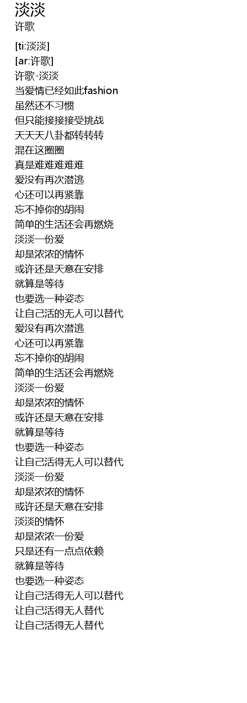 | [00:00.196] | 许歌-淡淡 |