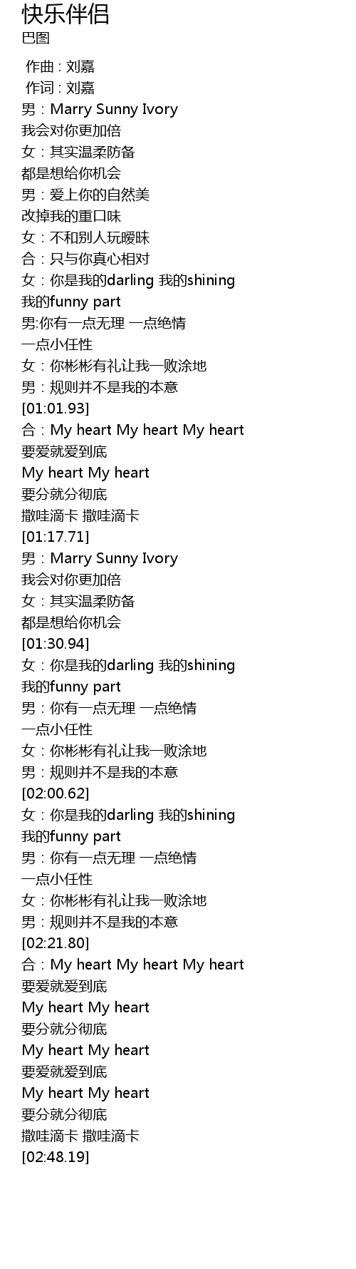 | [01:19.24] | 男:Marry Sunny Ivory |