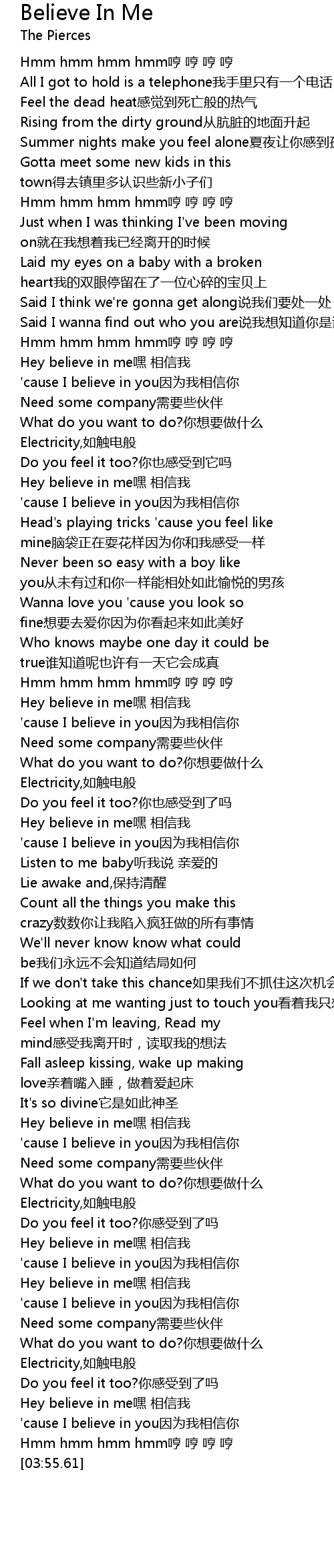 | [03:20.85] | Hey believe in me嘿 相信我 |