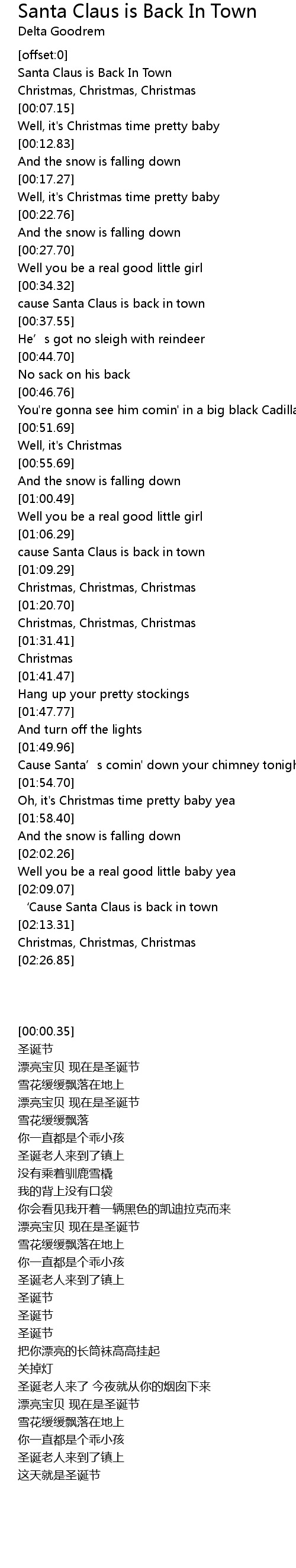 | [02:09.88] | ‘Cause Santa Claus is back in town |