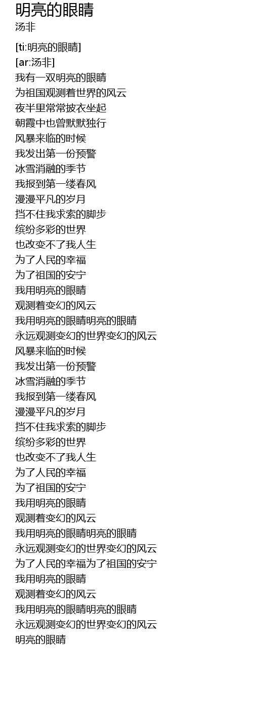 | [00:18.180] | 我有一双明亮的眼睛 |