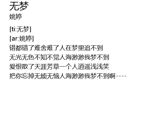 | [00:31.479] | 无光无色不知不觉人海渺渺我梦不到 |