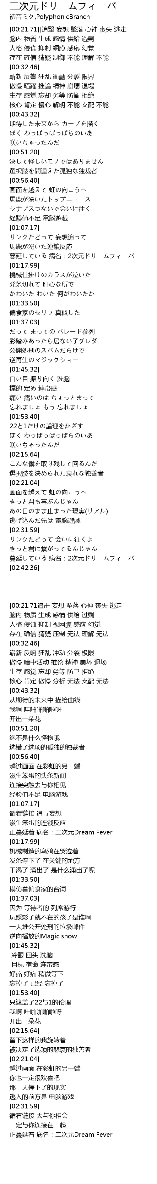 | [02:36.82] | 蔓延している 病名:2次元ドリームフィーバー |