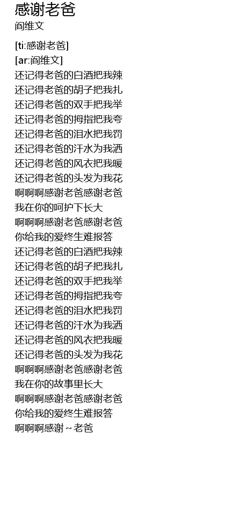 | [03:16.495] | 还记得老爸的汗水为我洒 |
