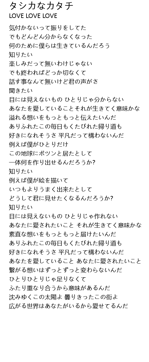 | あなたを愛していることそれが生きてく意味かな | |