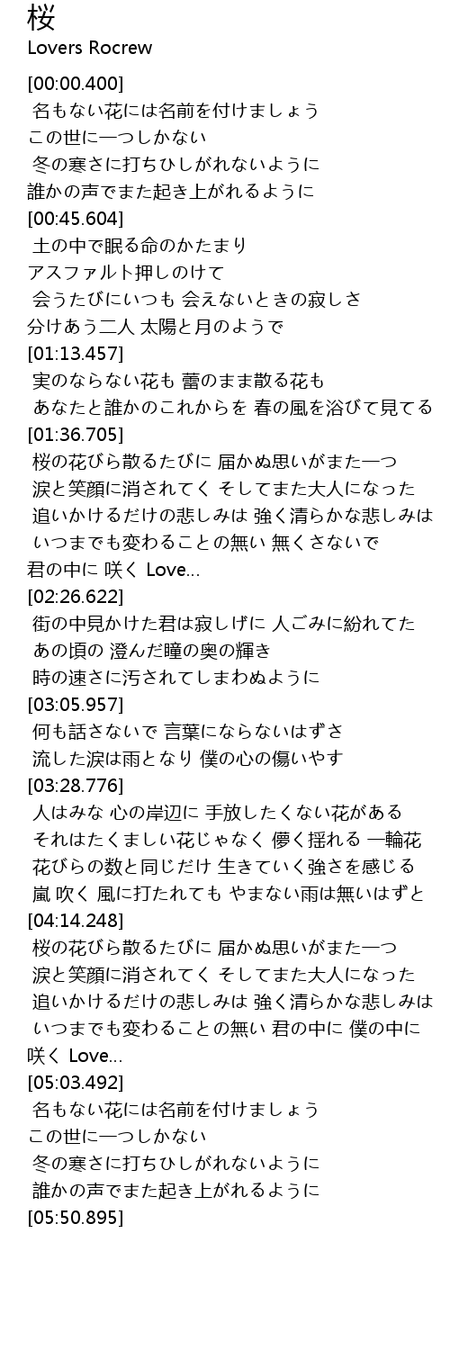 | [03:51.392] | 花びらの数と同じだけ 生きていく強さを感じる |