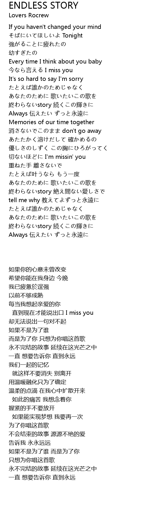 | [03:10.94] | 終わらないstory 絶え間ない愛しさで |