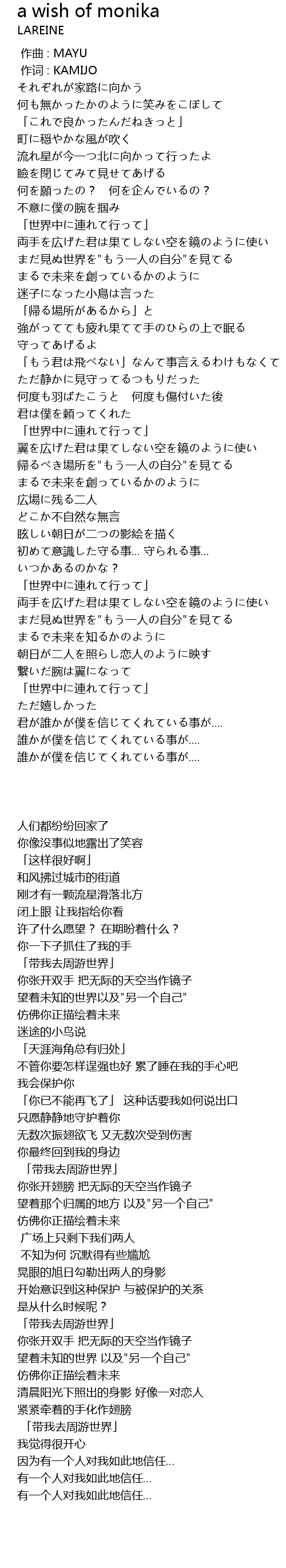 | [01:17.250] | 何を願ったの? 何を企んでいるの? |