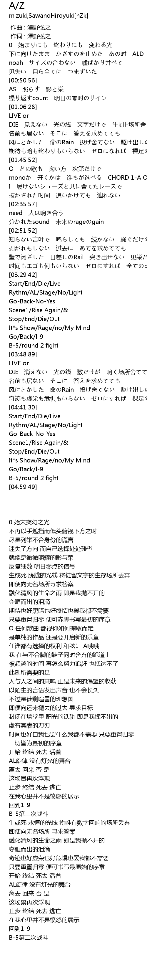 | [03:29.67] | Start End Die Live |