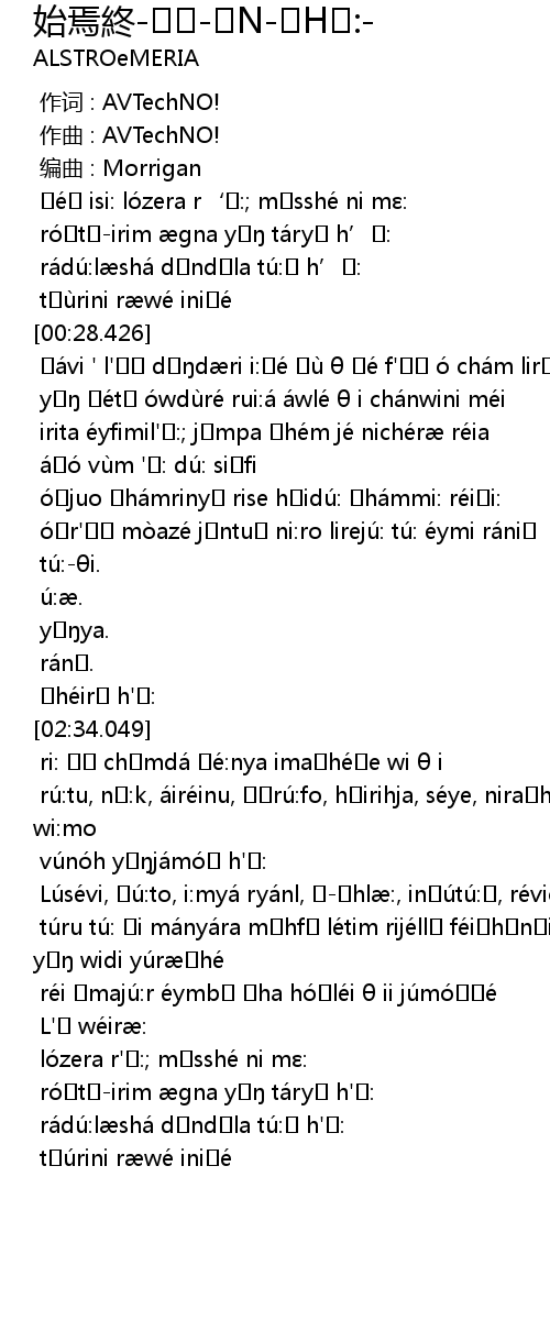 | [01:57.974] | óʊr'ɔʊ mòazé jʌntuɔ ni:ro lirejú: tú: éymi rániʌ |