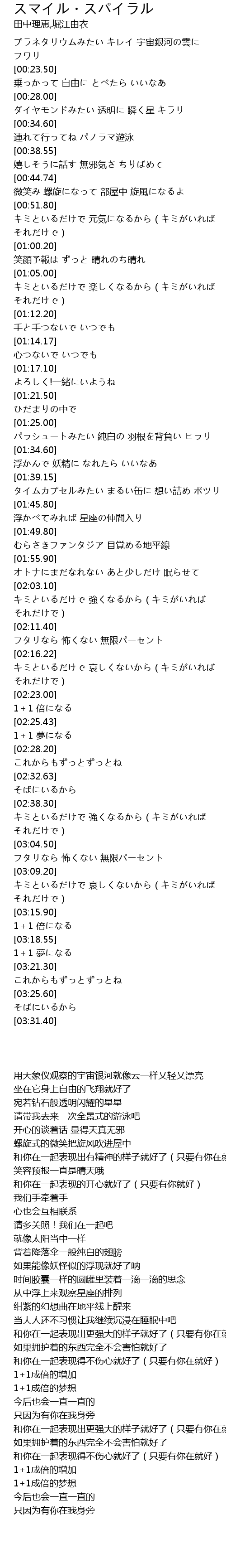 | [03:18.60] | 1+1 夢になる |