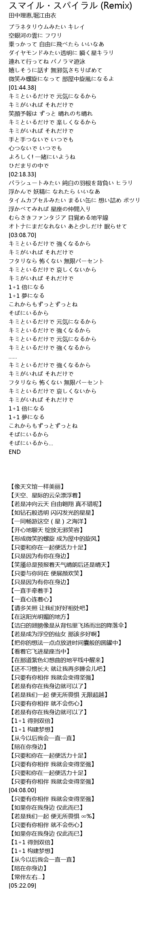 | [01:37.30] | 微笑み螺旋になって 部屋中旋風になるよ |