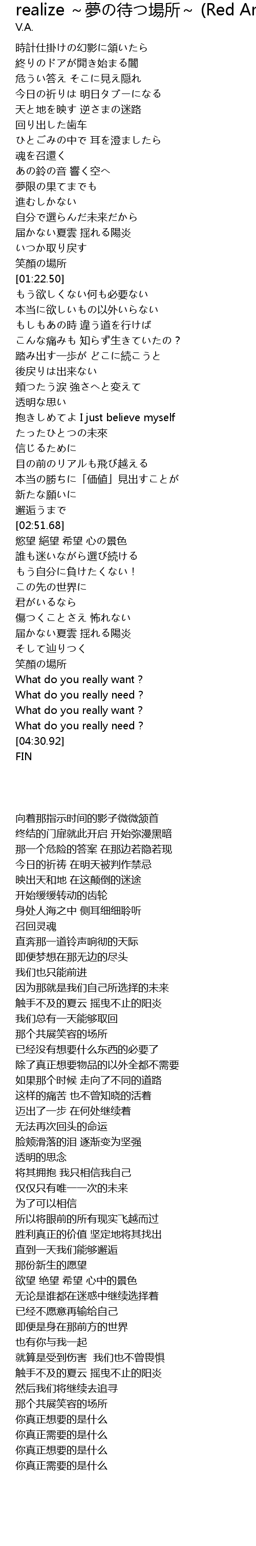 | Song | realize ~夢の待つ場所~ (Red Ambition mix) |