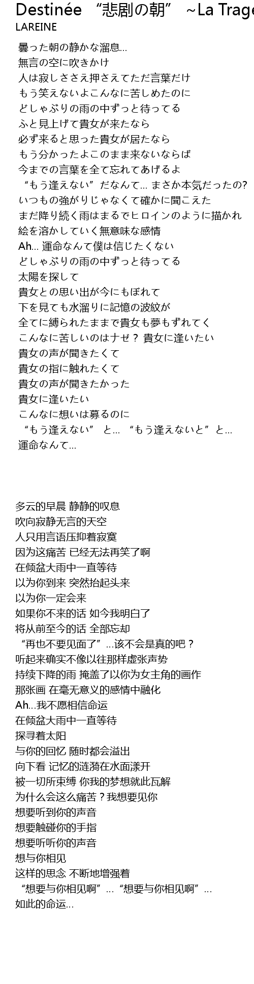 | Song | Destinée “悲剧の朝” ~La Tragedie Du Matin~ |