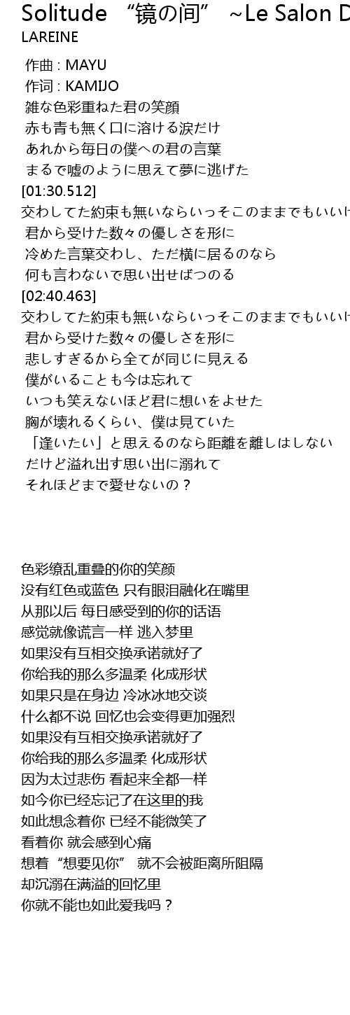 | Song | Solitude “镜の间” ~Le Salon Du Miroir~ |