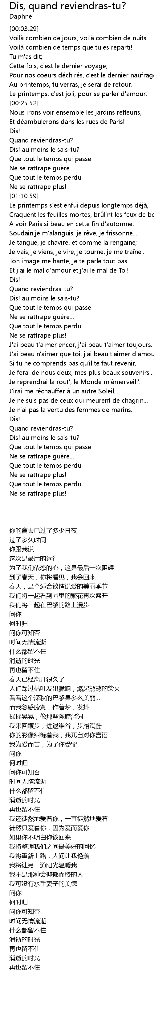 | [00:19.34] | Au printemps, tu verras, je serai de retour. |