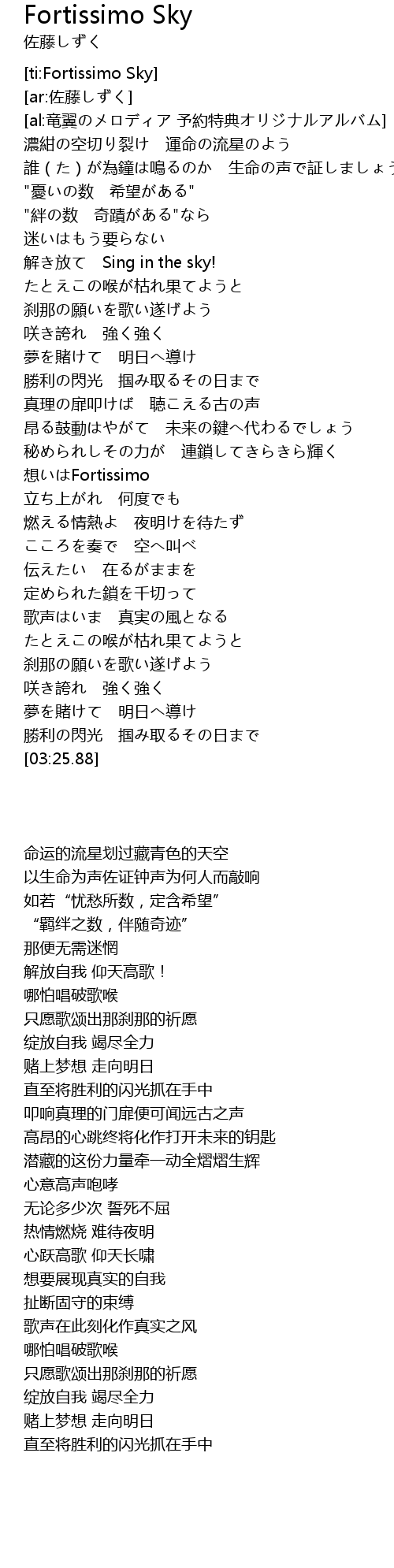 | [02:19.17] | こころを奏で 空へ叫べ |