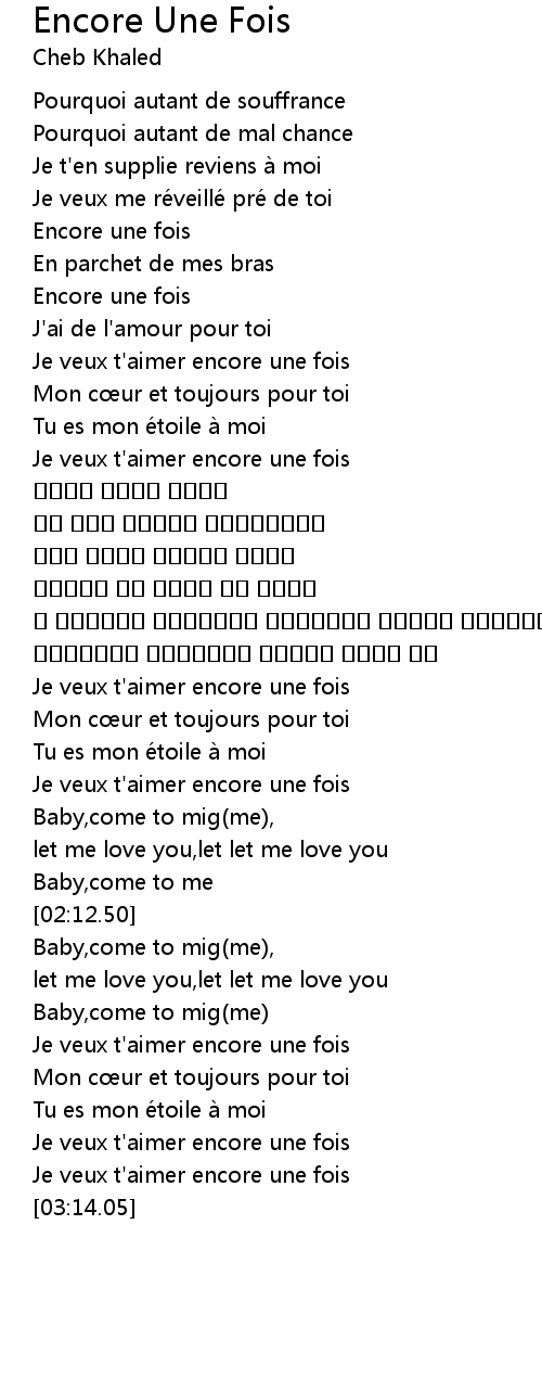 | [02:31.43] | Je veux t'aimer encore une fois |