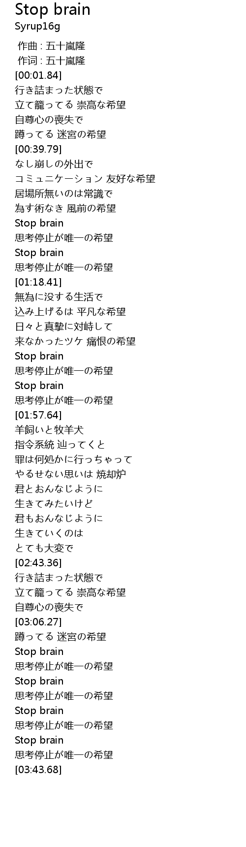 | [03:00.11] | 立て籠ってる 崇高な希望 |