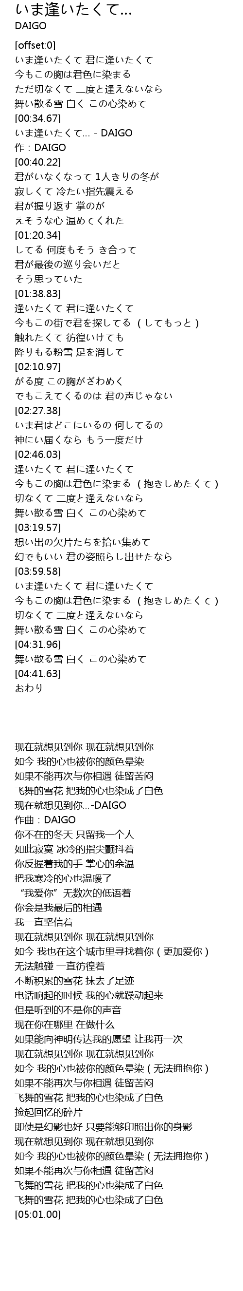 | [00:35.42] | いま逢いたくて… - DAIGO |