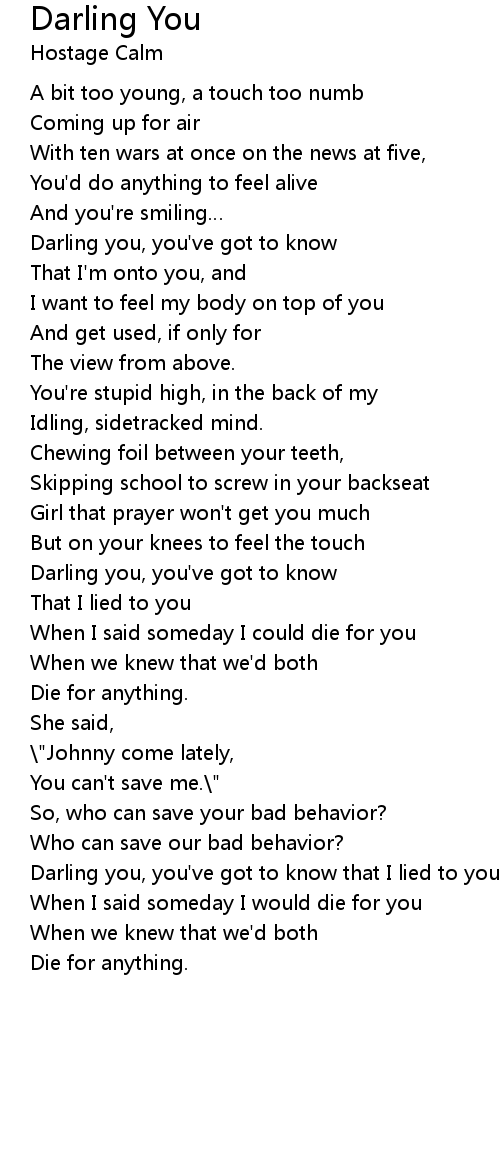 | Darling you, you've got to know | |
