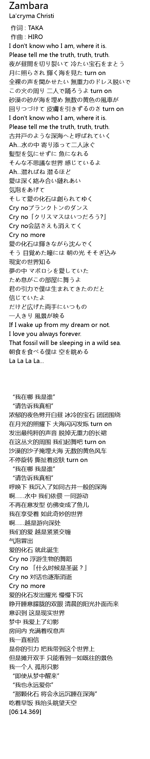 | [03:15.486] | Cry no |