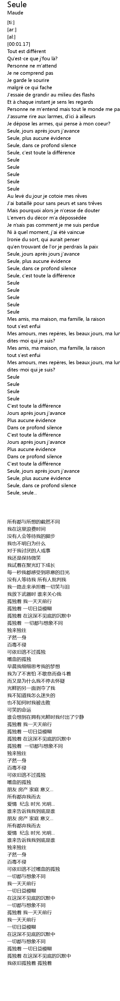 | [01:40.01] | Seule, jours apre s jours j' avance |