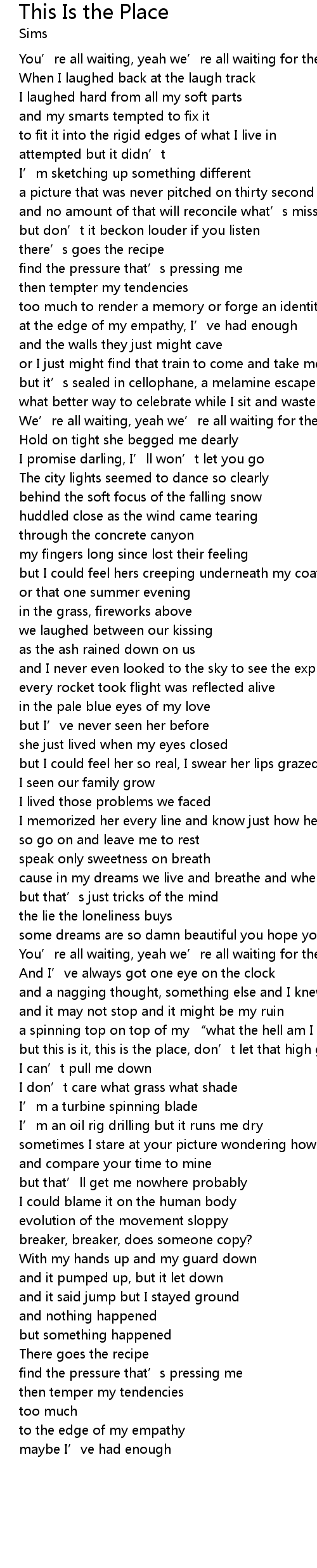 | but this is it, this is the place, don' t let that high go to waste | |