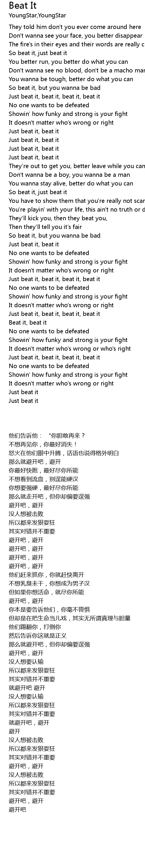 | [02:12.41] | Just beat it, beat it, beat it, beat it |