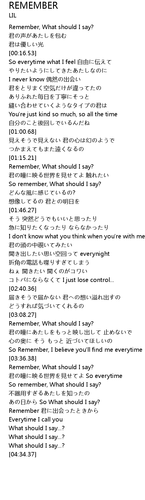 | [03:43.18] | 君の瞳に映る世界を見せてよ So everytime |