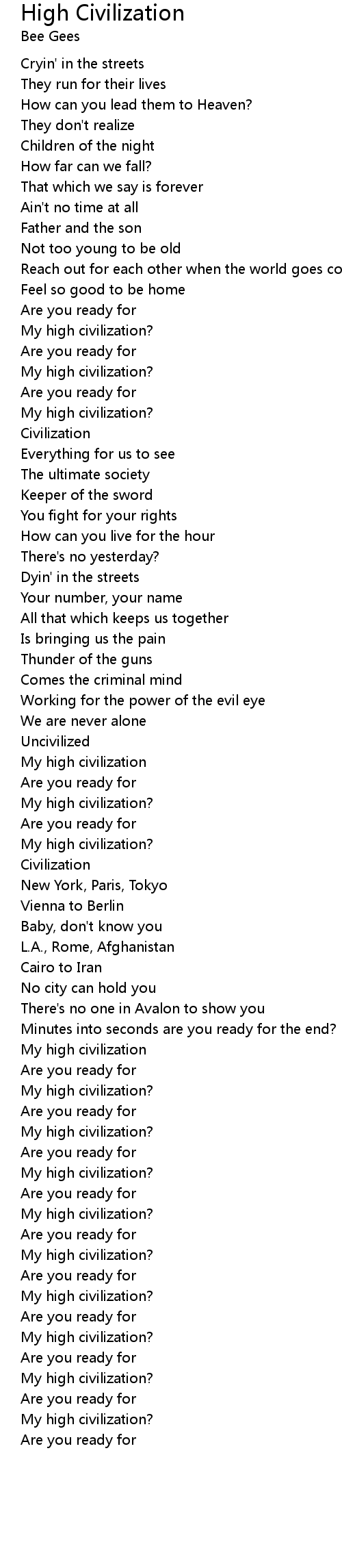 High Civilization Lyrics