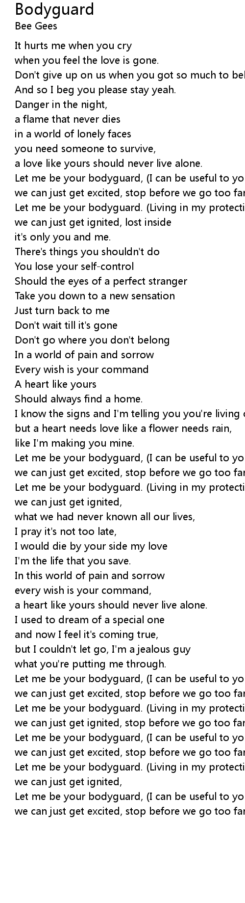 Let me be your bodyguard. (Living in my protection) |