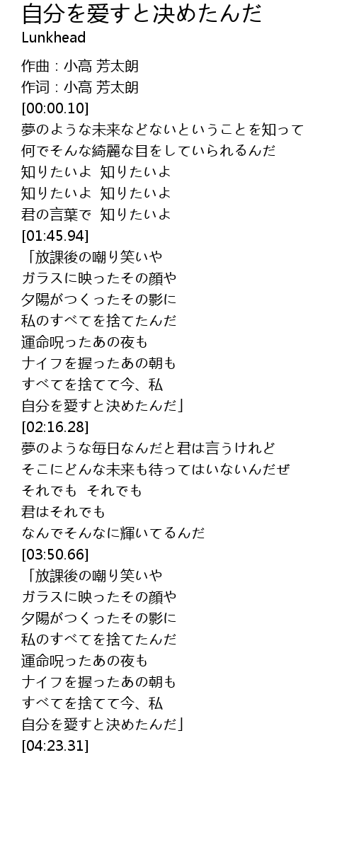 | [04:17.00] | 自分を愛すと決めたんだ」 |