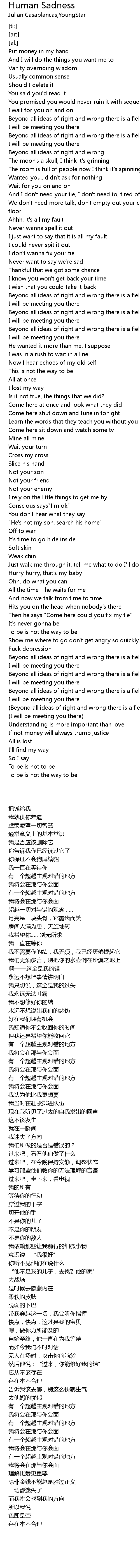 | [09:13.61] | (Beyond all ideas of right and wrong there is a field) |