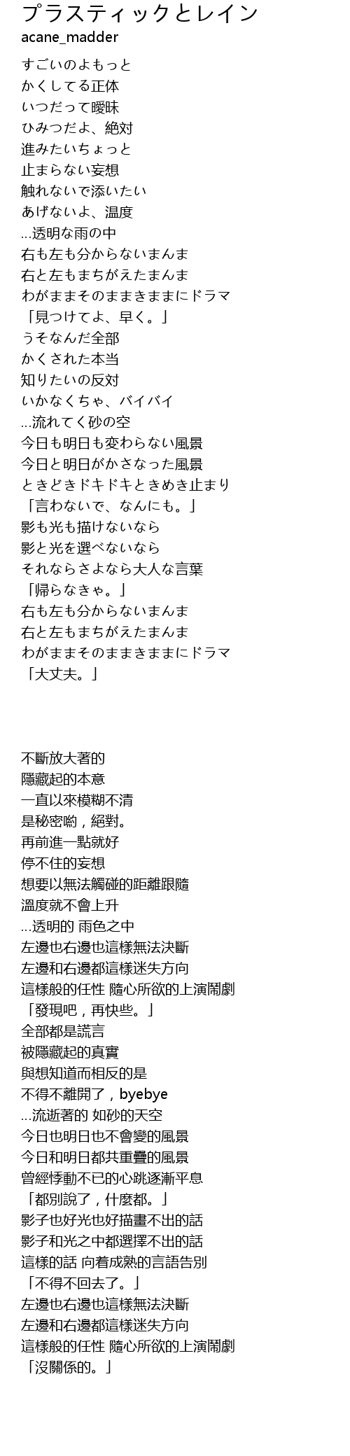 | [02:05.94] | 「言わないで、なんにも。」 |