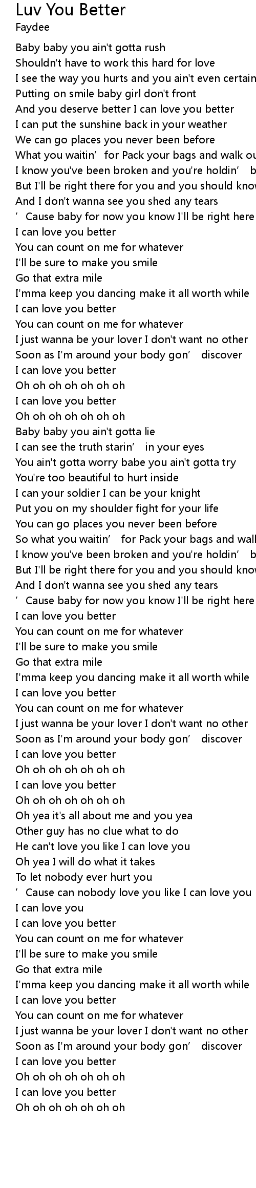 | [02:47.57] | ' Cause can nobody love you like I can love you |