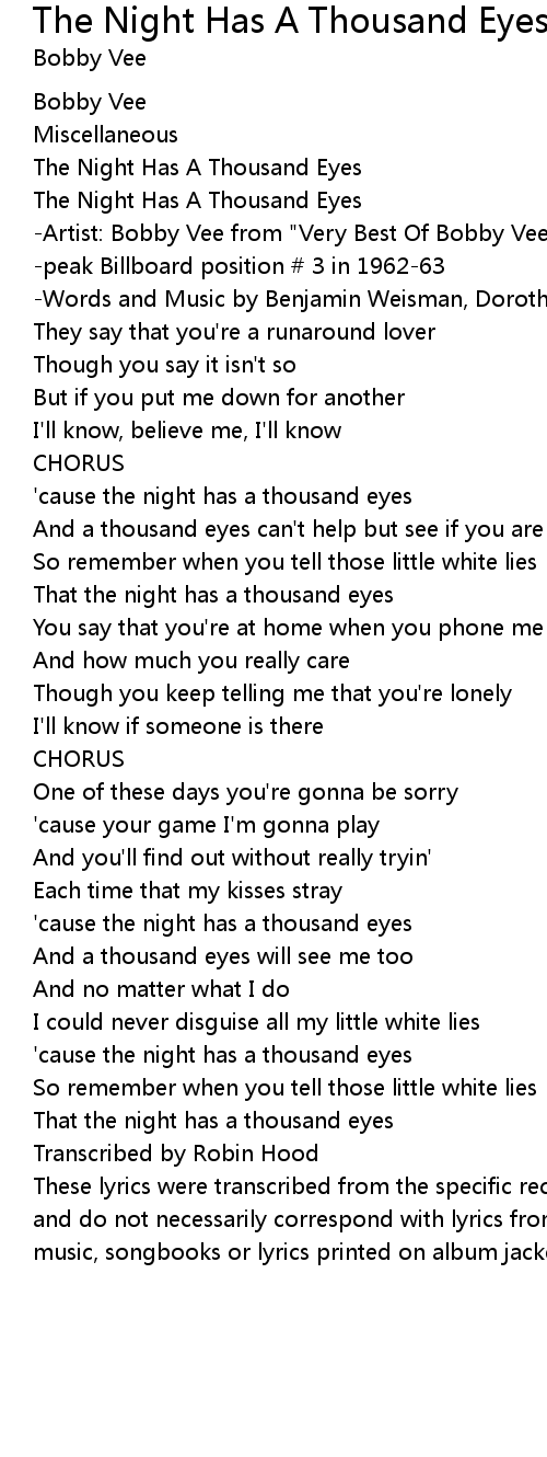 That the night has a thousand eyes |
