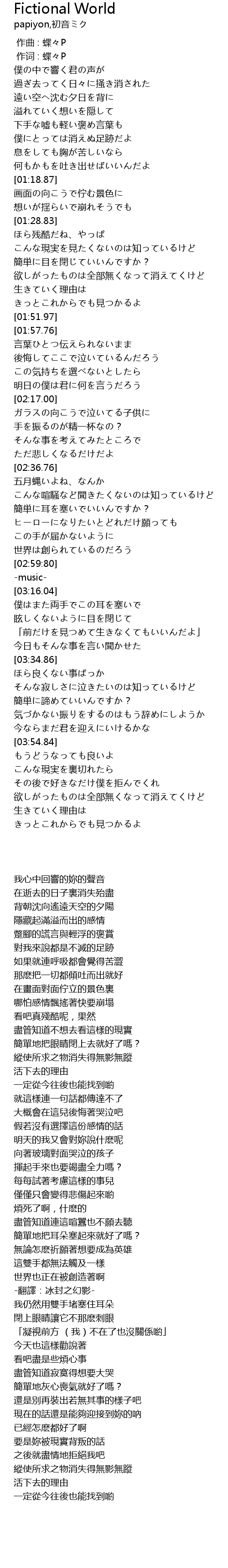 | [00:00.00] | 作曲 : 蝶々P |