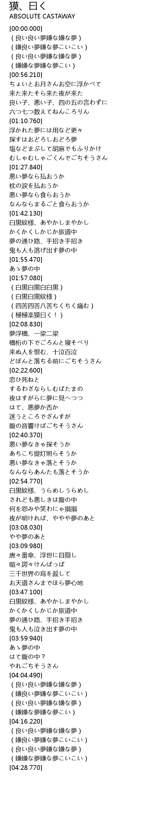 | Song | 獏、曰く |