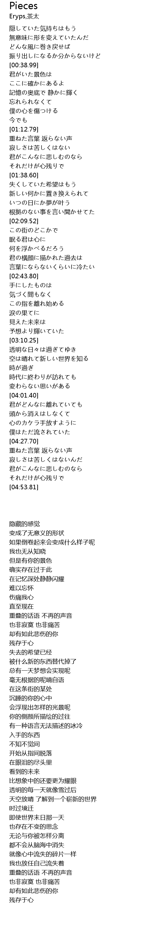 | [01:13.70] | 重ねた言葉 返らない声 |