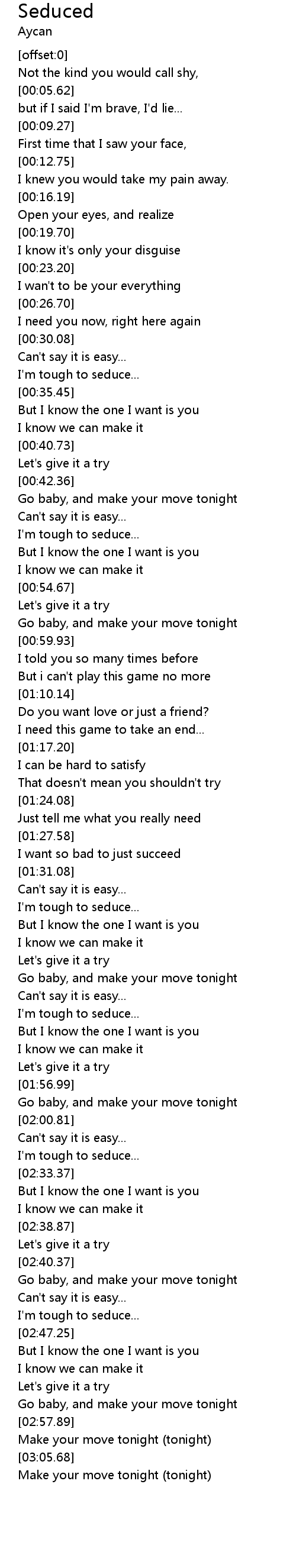 | [03:09.62] | Make your move tonight (tonight) |