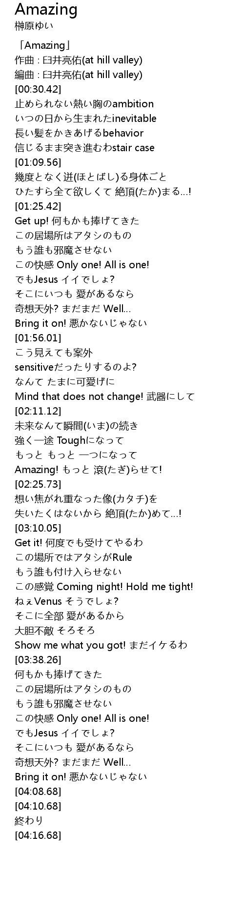| [02:22.05] | Amazing! もっと 滾(たぎ)らせて! |