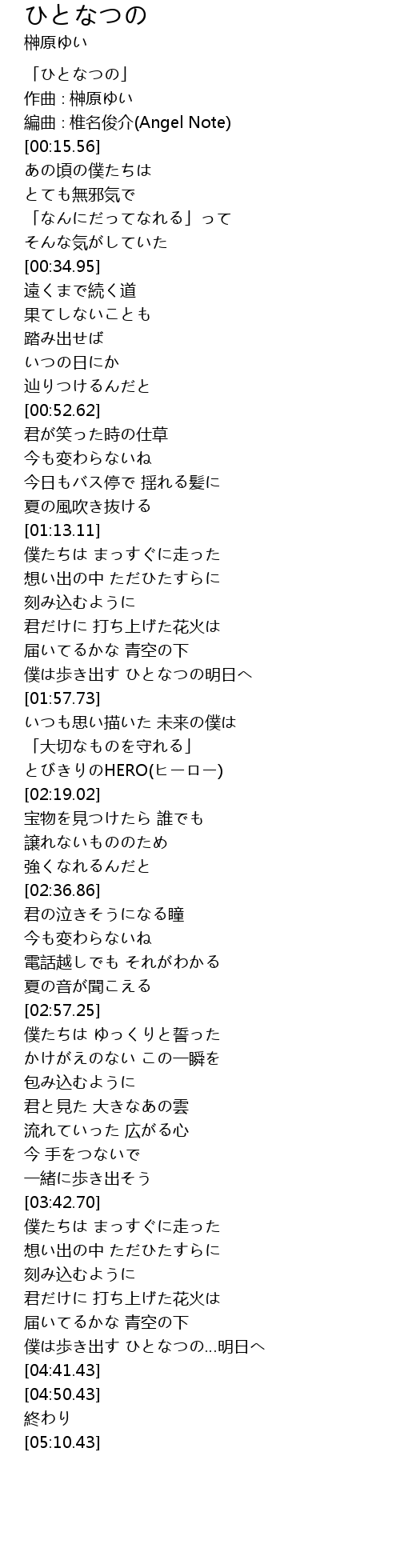 | [04:26.77] | 僕は歩き出す ひとなつの…明日へ |