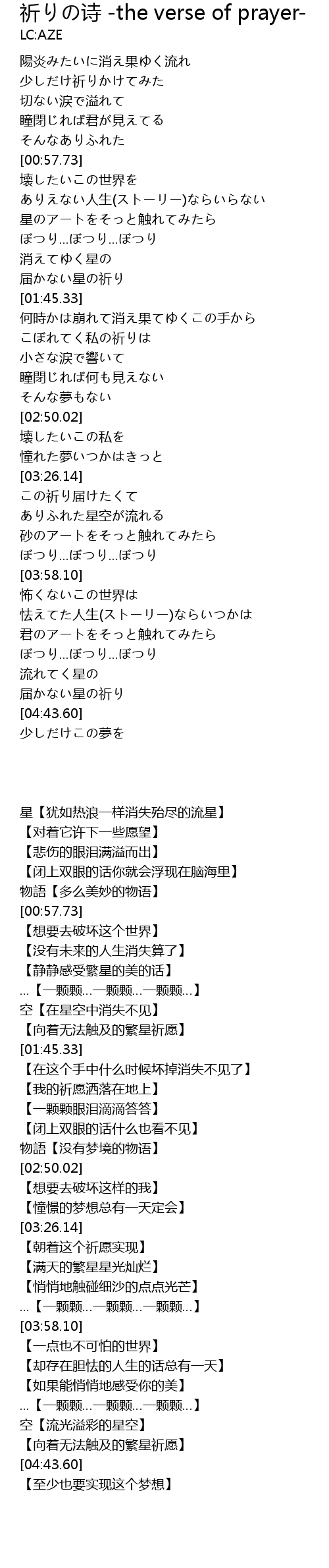 | [00:29.72] | 少しだけ祈りかけてみた |