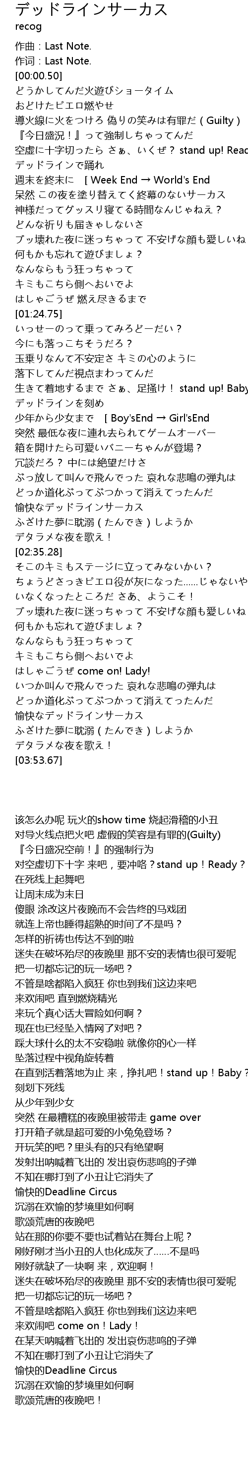 | [03:40.81] | 愉快なデッドラインサーカス |