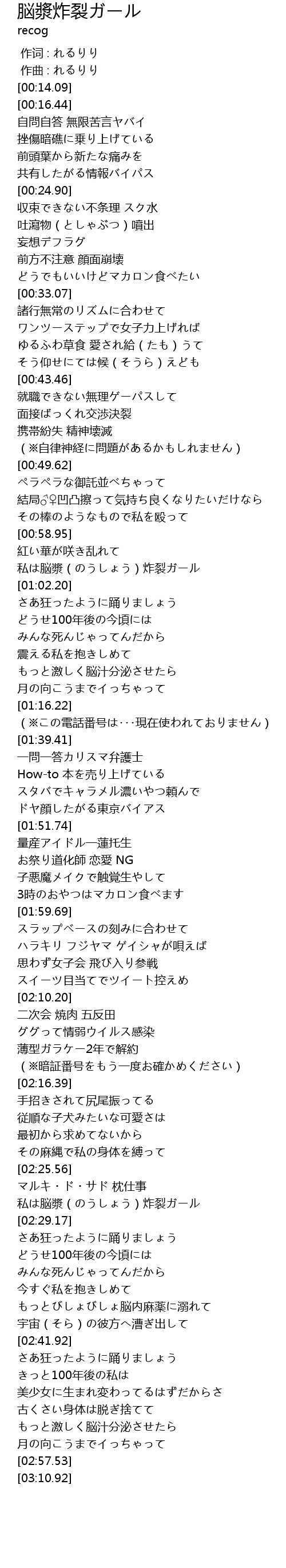 | [01:00.88] | 私は脳漿(のうしょう)炸裂ガール |