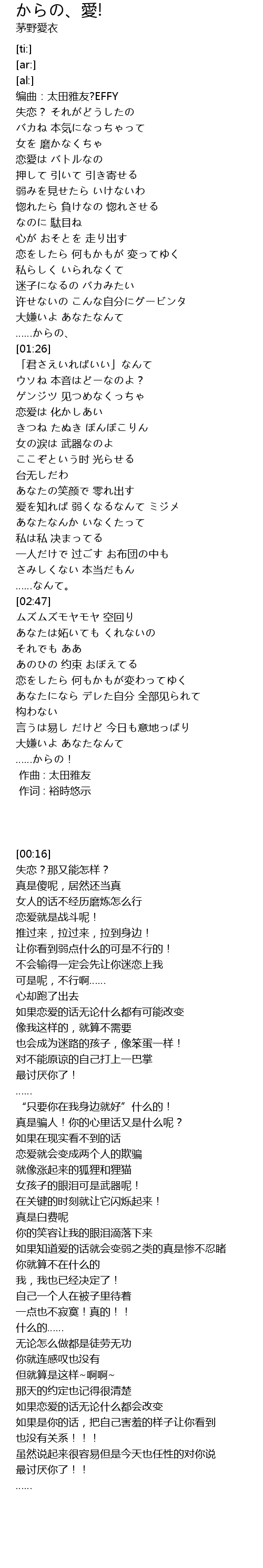 | [02:17] | 爱を知れば 弱くなるなんて ミジメ |