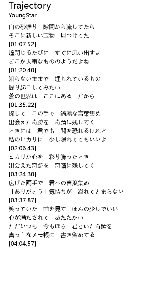 | [01:35.57] | 探して この手で 綺麗な言葉集め |