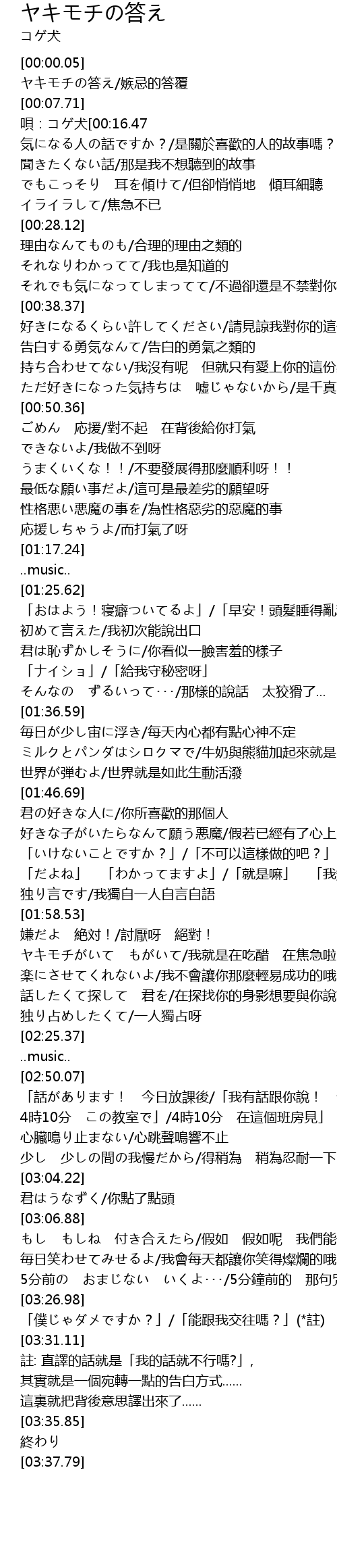 | [00:00.72] | ヤキモチの答え/嫉忌的答覆 |
