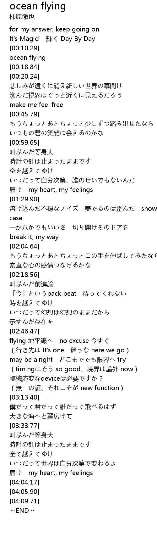 | [02:51.82] | flying 地平線へ no excuse 今すぐ |